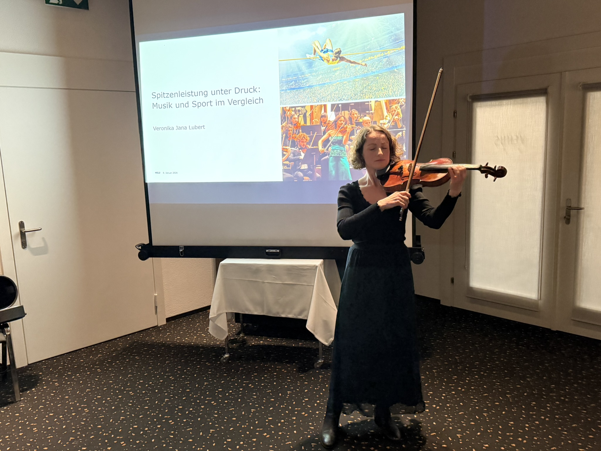 31 Panathletinnen und Panathleten besuchten am 8. Januar das erste Meeting des Jahres 2026. Dr. Veronika Jana Lubert, Psychologin und Professorin für Musiker:innen-Gesundheit an der Hochschule Luzern - Musik, referierte über gemeinsame und differierende Herausforderungen von Spitzensport und Spitzenmusik.